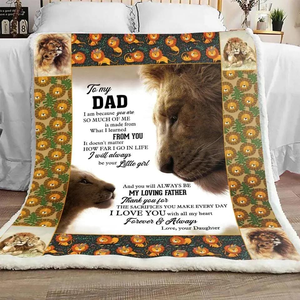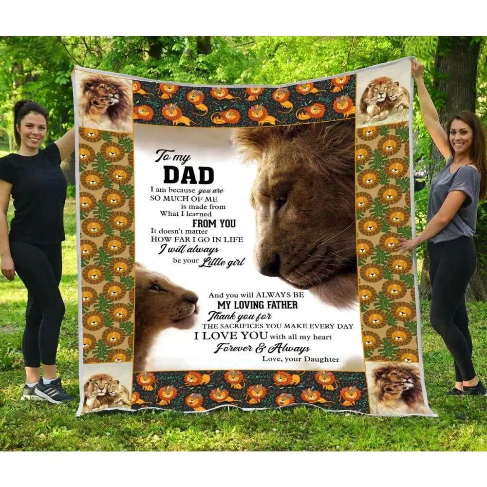 Daughter To Dad Father’s Day Fleece Quilt Blanket Lion Art I Love You With All My Heart – TopBestClothing